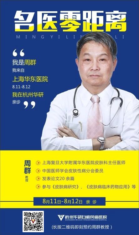 火红的八月,汇集着火的色彩,洋溢着青春的气息。祛白节也在火热进行中,患者纷纷从各地赶来,我院将于2018年8月4日—2018年8月31日开展“京·浙·沪白癜风专家联合义诊”活动,由首都医科大学附属天坛医院陈长斌教授、上海复旦大学附属华东医院周群教授、上海复旦大学附属华山医院魏明辉教授、中国医科大学航空总医院刘永生教授,亲临现场开展联合义诊及会议研讨。届时,我们的患者可以和专家面对面。